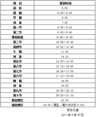 63365.com作息时间表(2017年9月4日起执行)