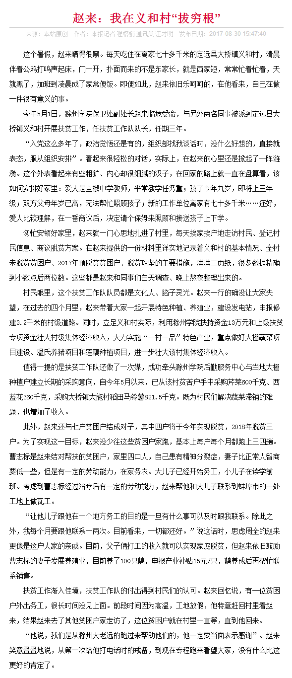 【安徽青年报】赵来:我在义和村“拔穷根”